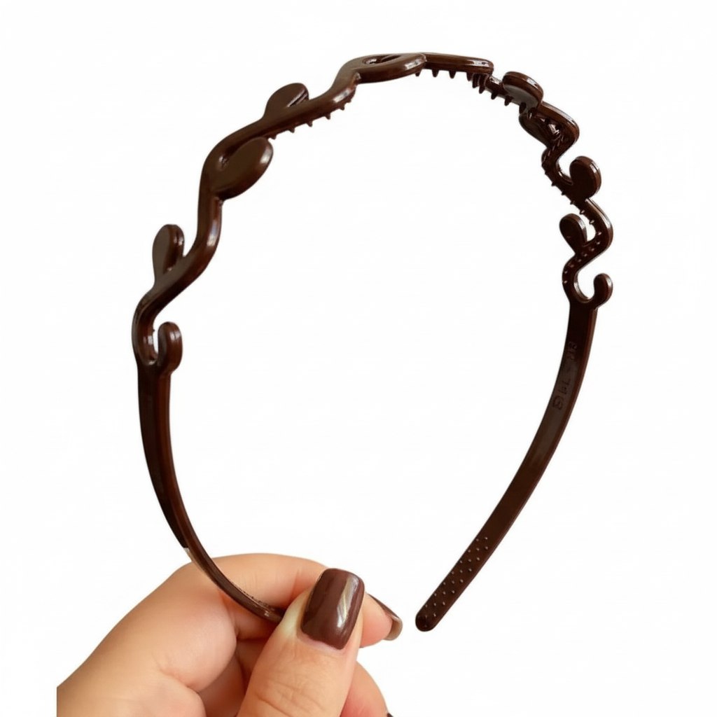 Ободок для волос женский коричневый пластиковый